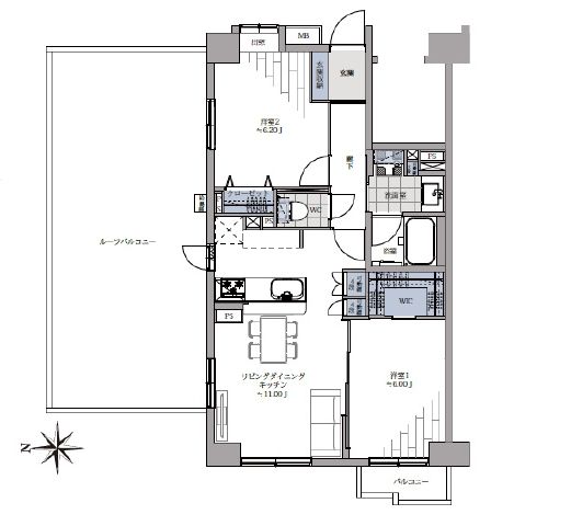 ルーフバルコニー面積:33.00㎡ |